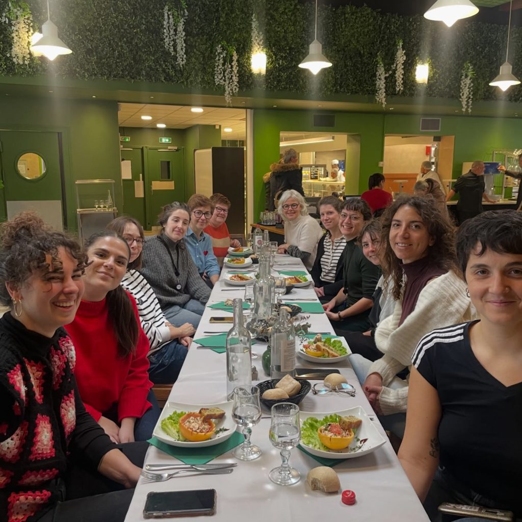 Nous arrivons à Grenoble en toute fin de matinée, quasiment pour l’heure du diner (ou déjeuner ou pranzo, selon les équipes). Cela tombe bien : une table nous est justement réservée à l’Arbre fruité, un restaurant-traiteur solidaire, derrière lequel se cache un beau projet d’insertion professionnelle visant plus particulièrement les femmes – premières exclues, comme nous ne le savons que trop bien – du marché de l’emploi. Ce n’est pas un hasard si nous faisons étape dans ce restaurant : il est rattaché à la Fondation Boissel, tout comme l’association Pluri-Elles, que nous visitons en après-midi. Pluri-Elles propose un service d’hébergement et d’accueil de jour pour les femmes victimes de violences conjugales et leurs enfants, ainsi qu’une pension de famille mixte pour personnes précarisées et en situation d’isolement. Cette visite donnera lieu à de riches échanges entre les différentes équipes et à une confrontation internationale en matière d’accompagnement des femmes.
