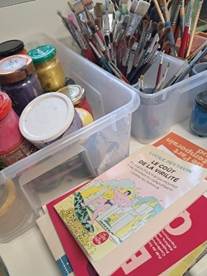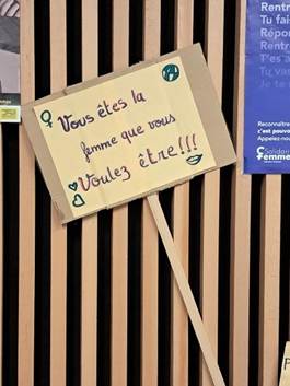 Dans les locaux ouverts au public, Sophie nous présente l’espace dédié aux mères et aux jeunes enfants et pensé dans le cadre du projet La Tresse visant à restaurer le lien parental souvent malmené. Nous prenons également le temps de discuter avec l’intervenante en charge des ateliers d’art-thérapie de l’association et des groupes de parole. Enfin, Celia nous présente différents outils de sensibilisation développés par Solidarité Femmes. Nous connaissions déjà le violentomètre, mais pas la marelle du cycle de la violence. Nous découvrons non sans amusement la « Pêche aux connards ».