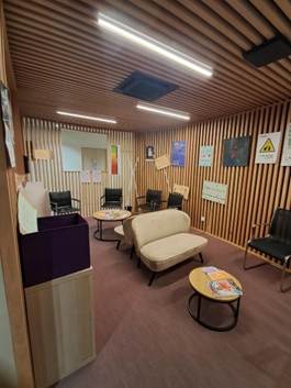 L’après-midi est consacrée à une visite commentée des locaux de Solidarité Femmes 13 accessibles au public, ainsi que des espaces de travail des professionnel.les. Nous ne verrons pas les logements pour femmes car ils sont actuellement disséminés dans la ville et sur le territoire des Bouches-du-Rhône. Solidarité Femmes 13 gère, outre celui de Marseille, des bureaux d’accueil à Istres et à Aix-en Provence. Des permanences sont assurées dans plusieurs localités du département. En 2024, Solidarité Femmes 13 a réalisé 3554 accueils de femmes victimes de violences conjugales et sexuelles. Cette même année, 85 femmes et enfants ont bénéficié d’un hébergement. L’association comporte également un volet Formation et Développement.